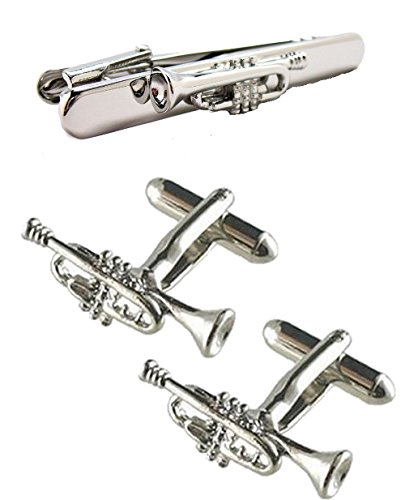 Best Seller! Silver coloured Trumpet cufflinks and tie clip Review
